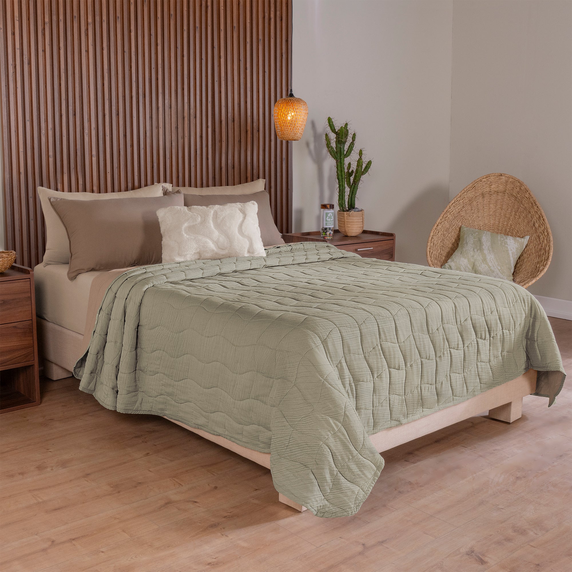 -Tela efecto muselina.-Incluye 2 fundas de almohada.-Incliye cojín everest bordado.Medidas y contenido: