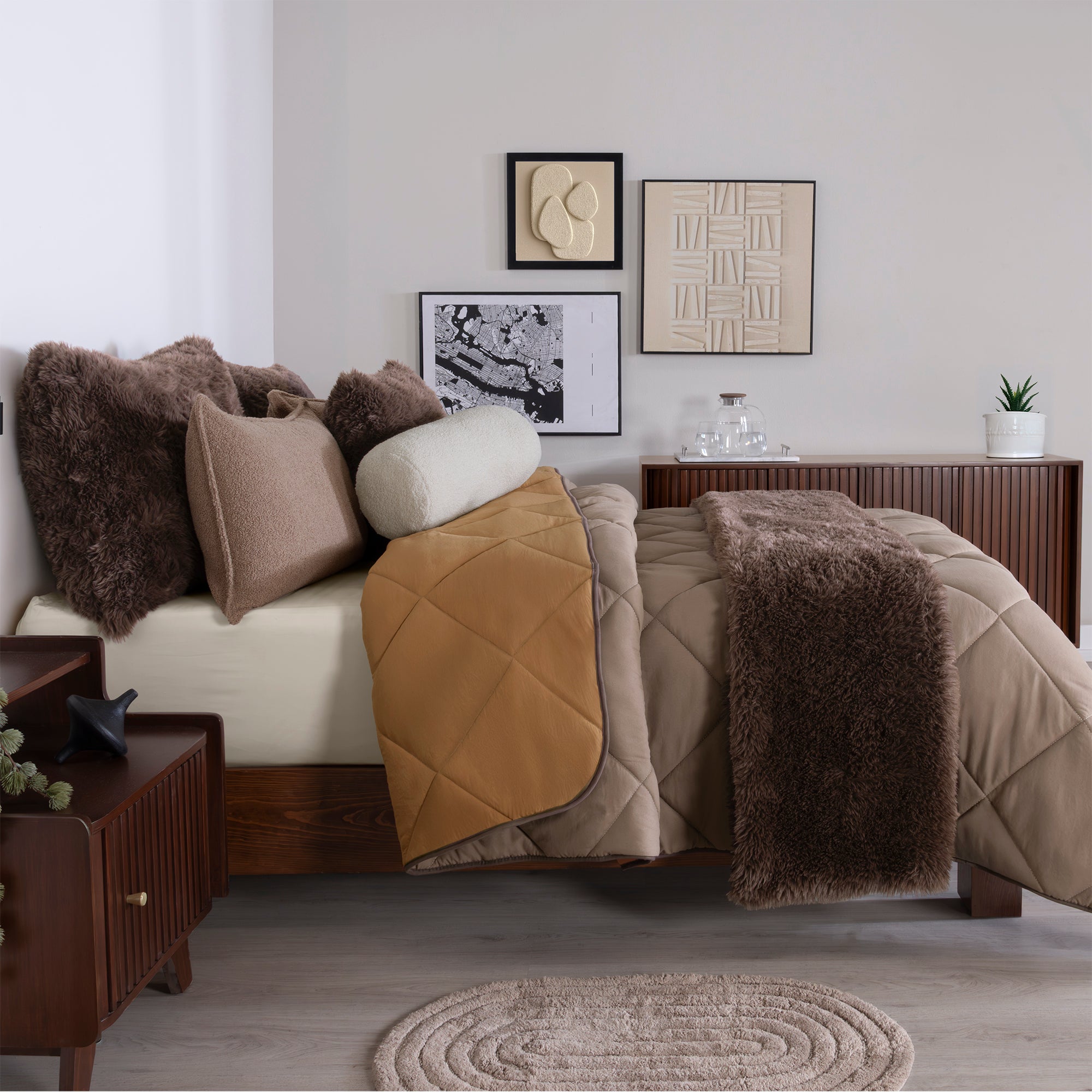 -Incluye 2 fundas bucle.-Incluye cojín bucle.-Incluye cobertor invernal.Medidas y contenido: