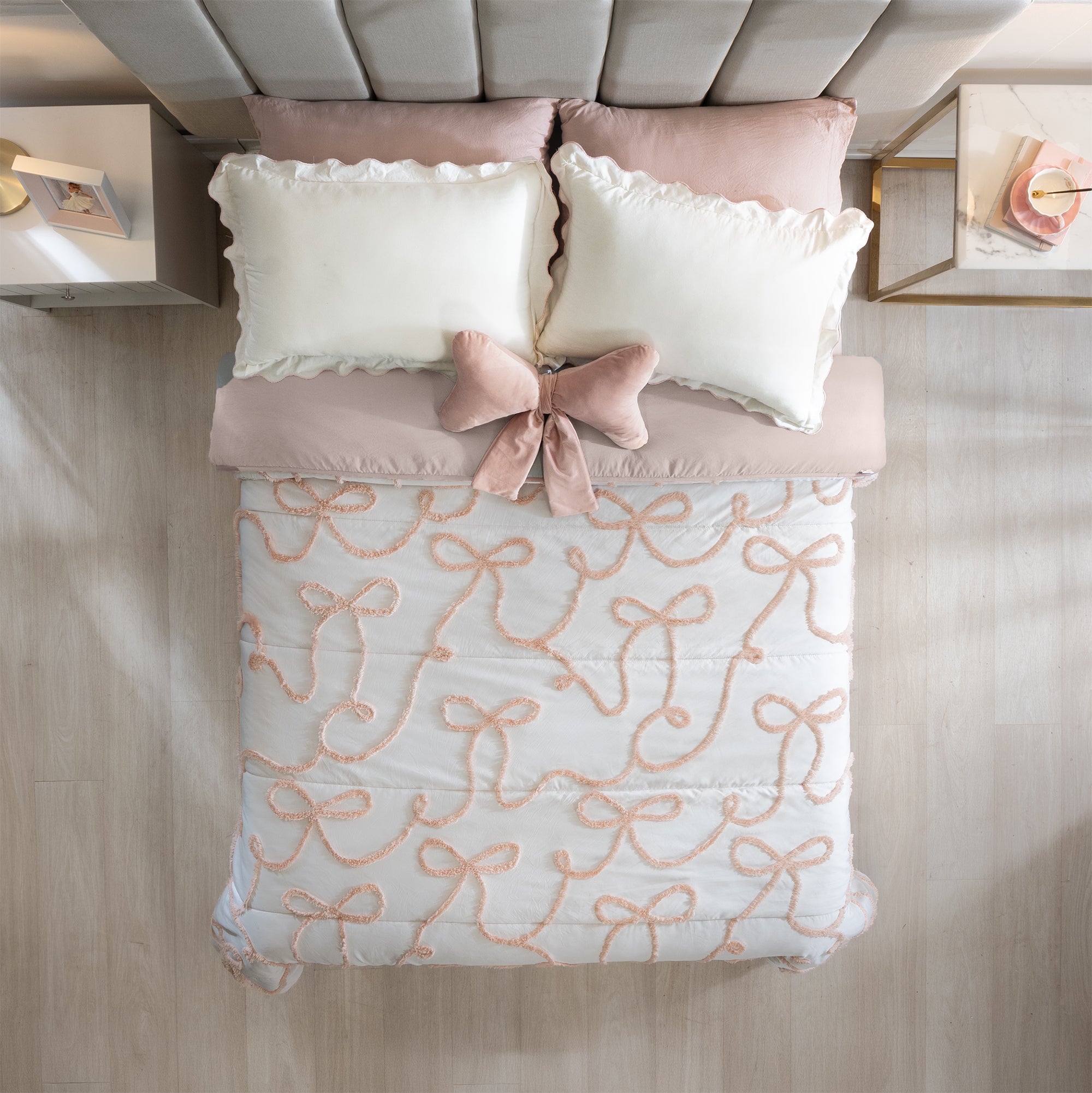-Cojín velvet en forma de moño incluido.